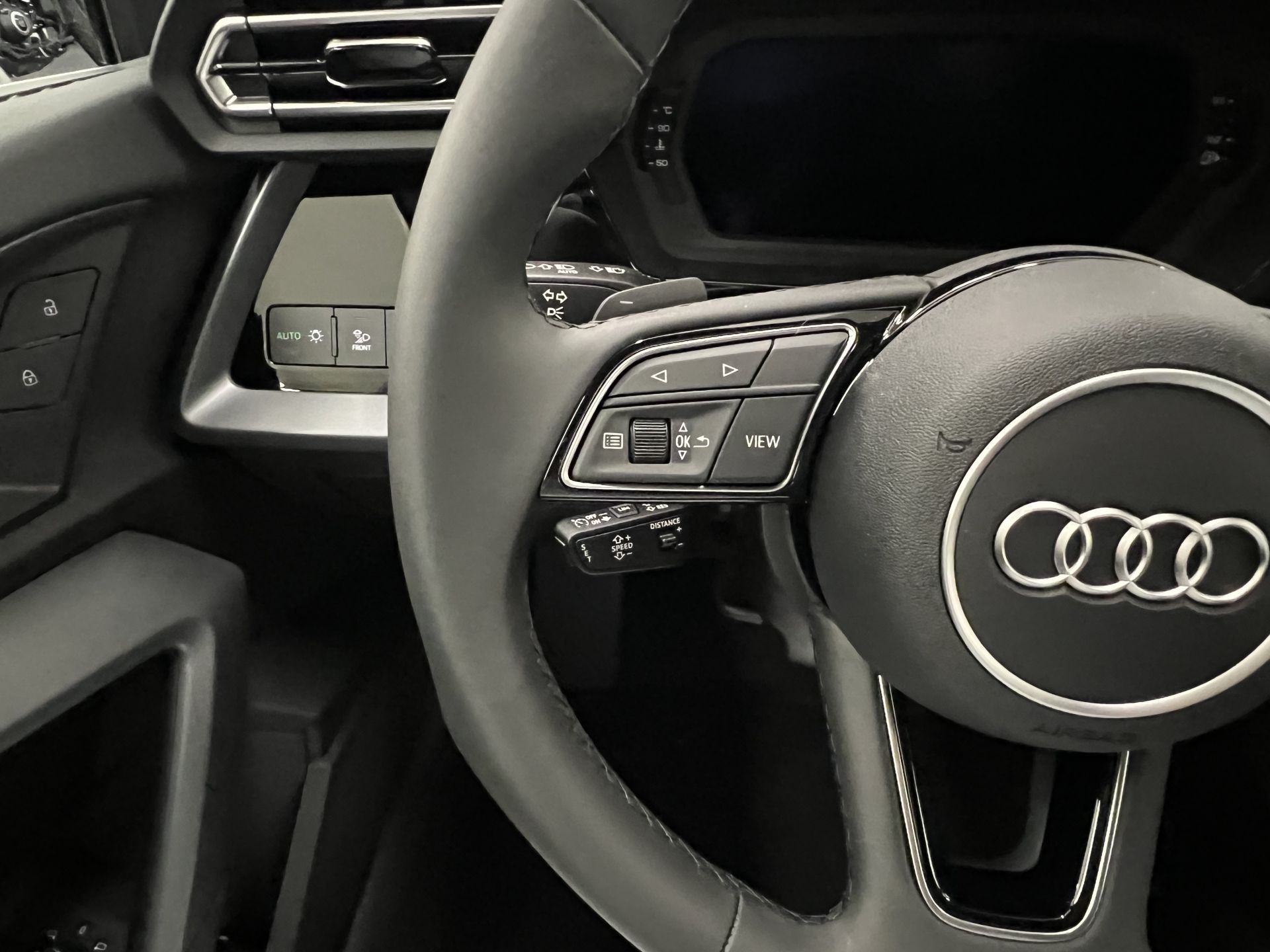 - Volante multi-función revestido de cuero ajustable en altura y en profundidad